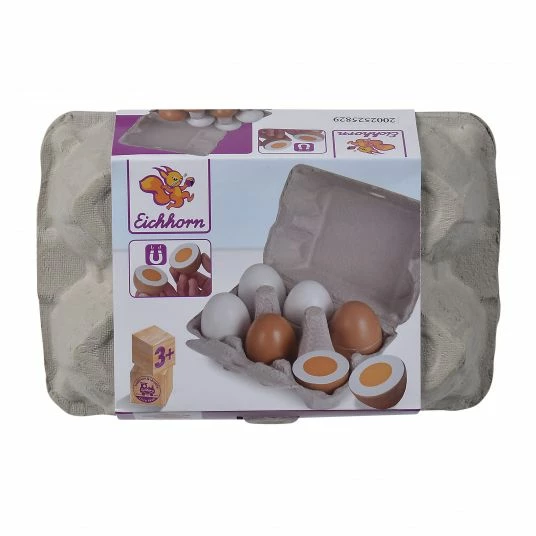 Was die Großen können, gelingt den Kleinen mindestens genauso gut. Mit dem Eichhorn 10 tlg. Set Eierbox, bestehend aus einer perfekt nachgeahmten Eierschachtel und 6 Eiern, kann Dein kleiner Schatz ab sofort selbst das Frühstück zubereiten. Das Set beinhaltet 10 Teile und ist für Kinder ab ca. 3 Jahren geeignet. Mit der gefüllten Eierbox kommt garantiert Abwechslung in die Kinderküche.