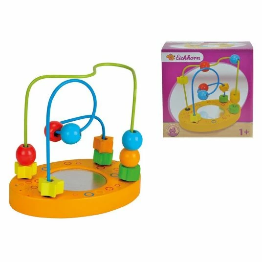 Bunte Perlen und Formen รผber die 2 Achterbahnen der Motorikschleife von Eichhorn schieben, macht jedem Kind richtig viel Spaร. Und nebenbei trainieren sie die Motorik sowie die Hand-Augen-Koordination. In der Mitte befindet sich ein Spiegel, in dem sich die Kleinen betrachten und die Bewegungen der Holzformen beobachten kรถnnen.