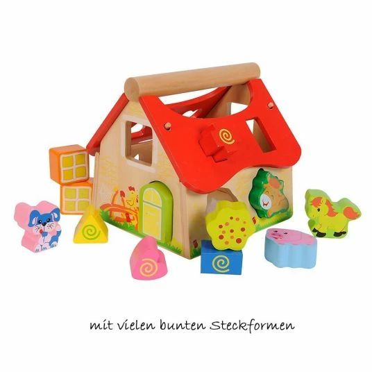 The enchanting Steckhaus Bauernhof by Eichhorn is a real eye-catcher and scores with loving details. Your child will enjoy finding the right openings for the twelve colourful wooden parts. There are animals and funny shapes, but also windows and doors – and everything has its place. In this way, your little one can playfully learn about shapes and colours. Thanks to the removable roof, the stones can easily be removed from the house again and the fun begins again.
