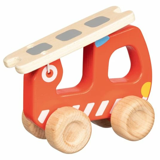 Das hübsch bemalte Spielfahrzeug Feuerwehr-Leiterwagen von Goki ist hochwertig verarbeitet und besonders schön gestaltet. Durch die schmale Form und die große Aussparung lässt sich das Feuerwehr-Auto besonders gut von kleinen Kinderhänden greifen und bewegen. Für den besonderen Spieleffekt lässt sich die Leiter hoch und runter klappen. Das Spielen mit Fahrzeugen fördert die Feinmotorik und Fantasie Deines Schatzes.