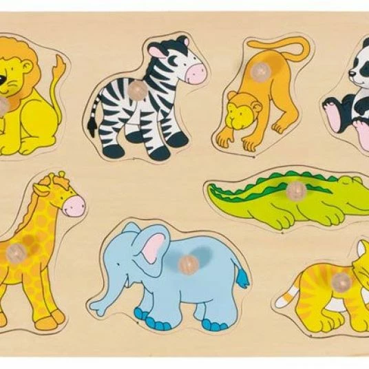 Bei einem Steckpuzzle lassen sich alle einzelnen Elemente des Motivs herausnehmen und einsetzen. Mit den großen Holzknöpfen gelingen auch die ersten Puzzleversuche. So kann Ihr kleiner Liebling während des Puzzelns mit Ihrer Hilfe erste Begriffe lernen. Besonders hübsch ist das Steckpuzzle „Zootiere.“ von Gollnest & Kiesel.