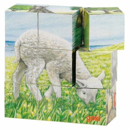 Das 9-teilige Würfelpuzzle Bauernhoftiere von Goki ist mit seinen großen Würfeln genau das richtige für Puzzleanfänger. Alle Würfel sind 3,5 cm groß und lassen sich gut von kleinen Händen greifen. Dein Schatz wird es lieben, die bunt-bedruckten Würfel, durch richtiges Kombinieren zu Bildern von Bauernhof-Tierkindern zusammenzufügen. Die Würfel sind von allen 6 Seiten bedruckt, sodass sich 6 verschiedene Tiere zusammenpuzzeln und erraten lassen.