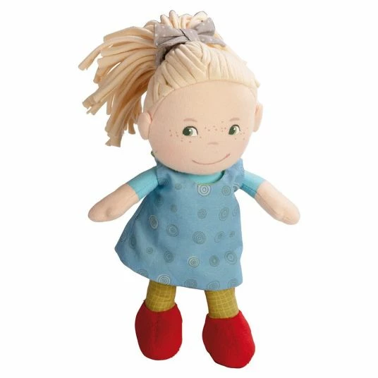 A magical play friend for little princesses is the 20 cm tall Cuddly doll Mirle from Haba. Made of soft fabric, it lies great in small children’s hands and is also wonderful for cuddling and cuddling. Mirle accompanies her child in all life situations – she comforts when something hurts, or shines thanks to affectionately embroidered face with her doll mummy in competition. She has a straw-blonde mane and wears a blue dress.