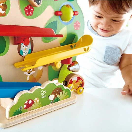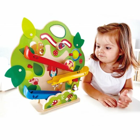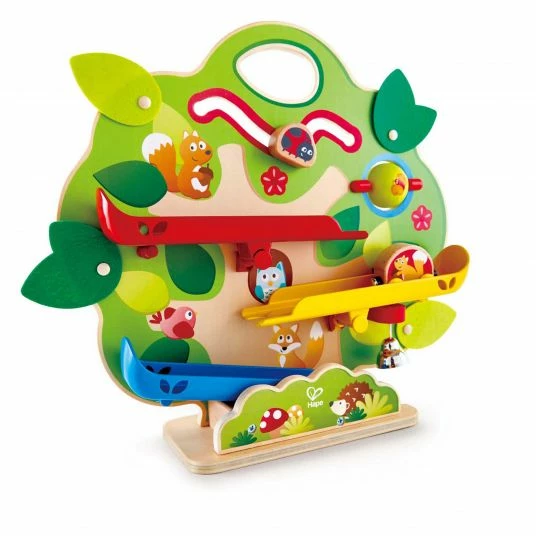 Der Eichhörnchen-Nussbahn von Hape macht einfach gute Laune. Dieses Eichhörnchen liebt es zu rutschen. Lass Dein Kind das Eichhörnchen an der oberen Rampe im Baum platzieren und seht zu, wie es die Rampe herunterrollt und dabei die Glocke läuten lässt. Der Vogel kann fliegen indem Dein Schatz den Globis dreht oder bewegt zusammen den niedlichen Marienkäfer ganz oben im Baum.