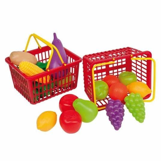 Der 11-teilige Einkaufskorb von Happy People ist bereits mit Obst oder Gemüse gefüllt und erweitert das Kaufladensortiment. Im pratischen Henkel-Korb lassen sich die Einkäufe besser transportieren.
