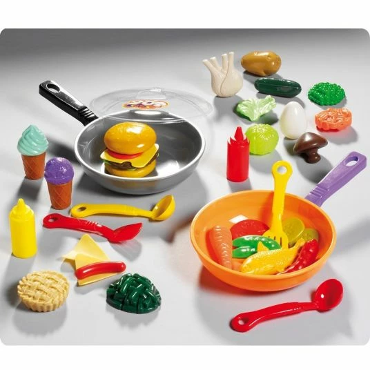 In this pan with handle and lid from Happy People delicious dishes can be prepared. The 20-piece set includes a pan with lid, a 2-piece cutlery and various foodstuffs.