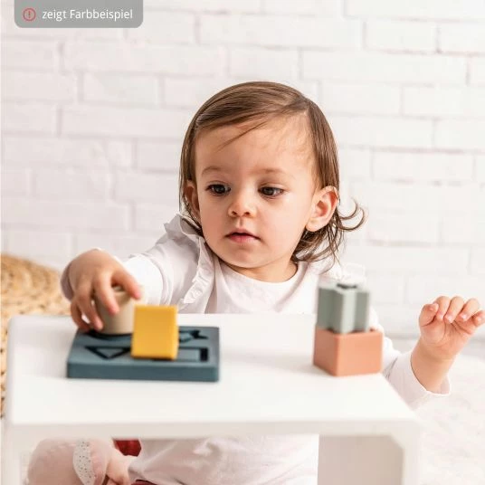 Das fröhliche Nattou Steckspiel mit 4 Formen aus Silikon in Sage Green eignet sich ideal, um spielerisch die Auge-Hand-Koordination und die motorischen Fähigkeiten Deines kleinen Entdeckers zu trainieren. Das Spiel ist mit 4 bunten Steckteilen in verschiedenen Formen ausgestattet, die auf die passenden Vertiefungen gesteckt werden wollen. Während der Zahnungsphase werden die Steckteile gern mit dem Mund erkundet und helfen dabei, Gaumen- und Zahnschmerzen zu lindern.
