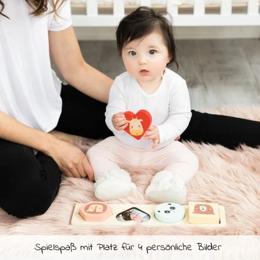Ob jung oder alt – Puzzeln macht nicht nur viel Spaß, sondern fördert auch unsere Denkprozesse. Vor allem, wenn sich unter den 4 Puzzleteilen jeweils ein Familienbild versteckt. Das Pearhead Steckspiel mit Bilderrahmen eignet sich für Deinen Nachwuchs ab etwa 12 Monaten. Dabei entwickelt Dein kleiner Weltentdecker ein Gespür für unterschiedliche Formen und Farben, sowie kombinatorische Fähigkeiten.