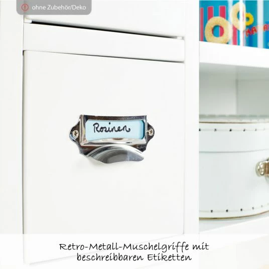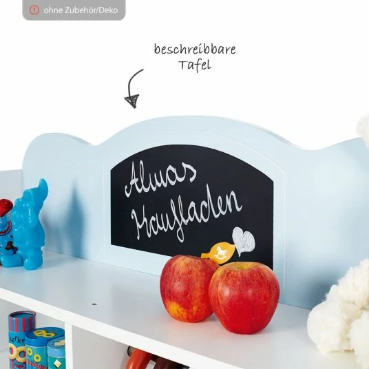Im Kaufladen Alma von Pinolino all children like to buy! The friendly, bright shop with its sรผรen retro elements enchants small and large. Curved shapes, tile look, inscribable labels and Maltafel round off the versatile shop perfectly.