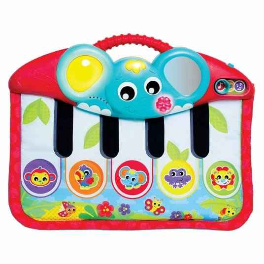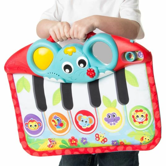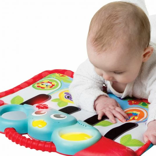 Das Füßchenklavier von Playgro ist vielseitig nutzbar: Babys können sowohl mitHänden als auch mit Füßen die Tasten zum Klingen bringen. Du bringst das Füßchenklavier einfach an Kinderwagen oder Babybett an. Das bunte Design mit niedlichen Dschungeltieren weckt schnell das Interesse Deines Kindes. Das integrierte Licht leuchtet bei Tastendruck auf und auch Geräusche ertönen. Sensorisches Training des Sehens, Berührens und Hörens erfolgt dabei spielerisch und die Grob- und Feinmotorik wird gefördert. Der praktischerTragegriff ermöglicht eine einfache Mitnahme. Hergestellt aus robustem und langlebigem Material, BPA-frei.